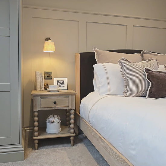 Featuring intricate hand-turned bobbin detailing, this bedside table brings classic charm and character to your bedroom. Designed with one spacious drawer, it provides convenient storage for night time essentials, while its compact design ensures versatility in both small and large spaces.