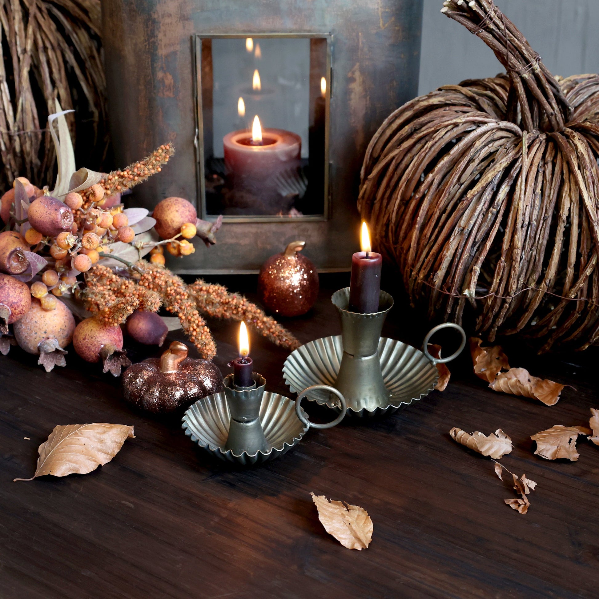 This charming brass candle holder has a vintage vibe with fluted detailing. How cute!