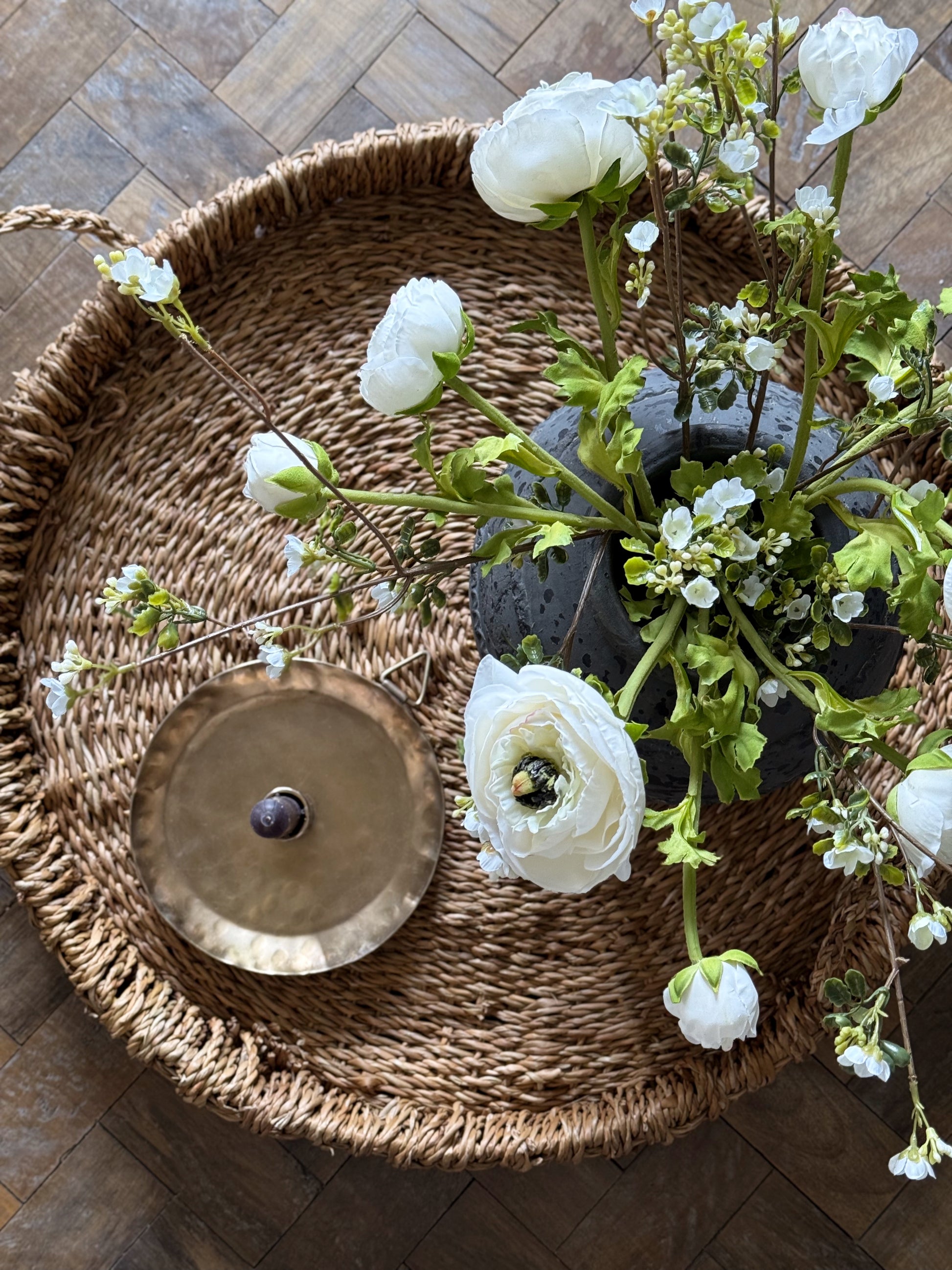 At the heart of the set is a large round seagrass tray, perfect for grounding your arrangement while adding natural, organic texture. Paired with a rustic terracotta vase, its earthy tones and handcrafted feel create a relaxed, lived-in look.