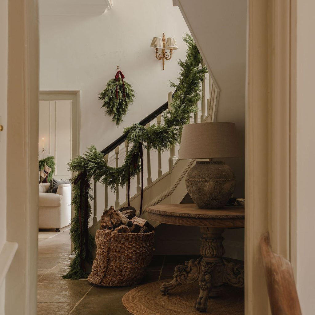 Elevate your seasonal décor with our Cypress Cedar Garland, a stunning artificial greenery piece that brings year-round elegance to any space. Measuring 200cm in length, this versatile garland drapes beautifully across mantels, tables, staircases, and doorways, delivering a lush, full effect with its realistic cedar foliage. Simply unwrap and arrange to suit your aesthetic—no fussy assembly required. The convenient loop attachment makes securing it effortless with a command hook, so you can transform your home in minutes. Layer it with our large cowbells and velvet ribbons for a richly festive Christmas display, or keep it understated for timeless autumn and winter appeal. Whether you're creating a cosy focal point or adding dimension to your entryway, this garland offers the premium, editorial look that defines Tilly and Ted's homeware collection. Perfect for those seeking quality artificial greenery that looks genuinely natural and lasts season after season.