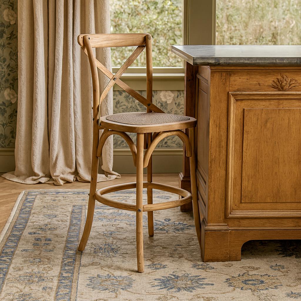 Lightweight yet sturdy, these natural bistro bar stools offer a versatile design that works beautifully in both modern farmhouse and classic interiors, adding warmth, texture, and a touch of Parisian flair to your space.