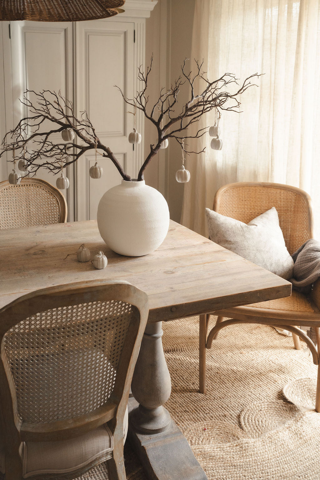 Add some autumn charm to your home with our Set of 3 Ceramic Hanging Pumpkins. These elegantly crafted pumpkins bring a touch of luxury and sophistication to any room. Display them together as a set or individually around your home for a unique and artistic touch. Perfect for adding a hint of fall to your decor.